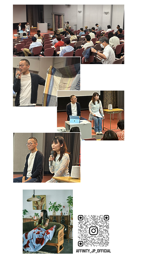 異業種との連携では、食品残渣を染料に活用する「SHOKUSAI」や、衣類を反毛して再び織物にする「HANMOU」など、サステナブルな視点を持ったブランドが紹介された。単なるリサイクルではなく、地域資源や人の記憶を活かした"ストーリー性の強いものづくり"が印象的だった。