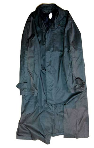 苦情品の外観 | ソデの外側が赤く変色している。また裾部分では生地の裏側にまで変色が及んでいる。 |