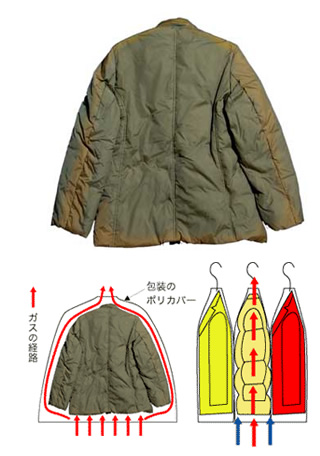 苦情内容 | ワンシーズン保管ご着用しようとしたら、袖や裾が赤く変色していた。 |